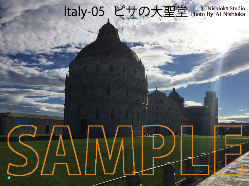 Italy-05 ピサの大聖堂~美しい青空と雲をバックにしたピサの大聖堂の広場の風景です。